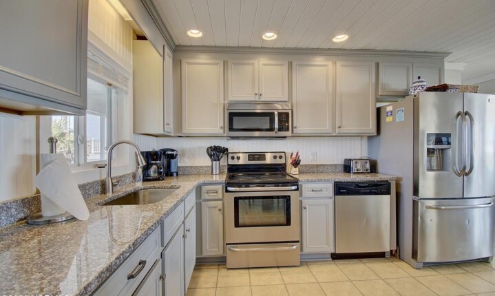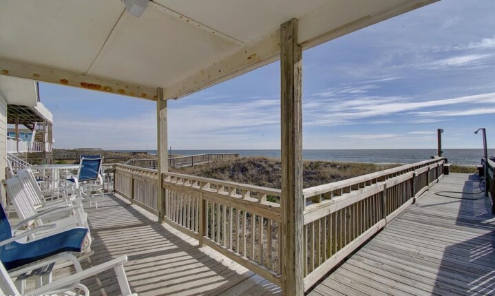 Ocean Front, recently renovated and updated with 4 bedrooms, 2 baths on the upper level and 2 bedroom, 1 bath on the lower plus a second kitchen! This property is move-in ready! The open concept great rooms up and down allow gatherings to enjoy time together telling the tales of activities on and around the beach, and sharing family memories! . Bring your flip flops and get your toes in the sand, just off your front porch. Investors, the property is a good income generator with even more rental by owner!