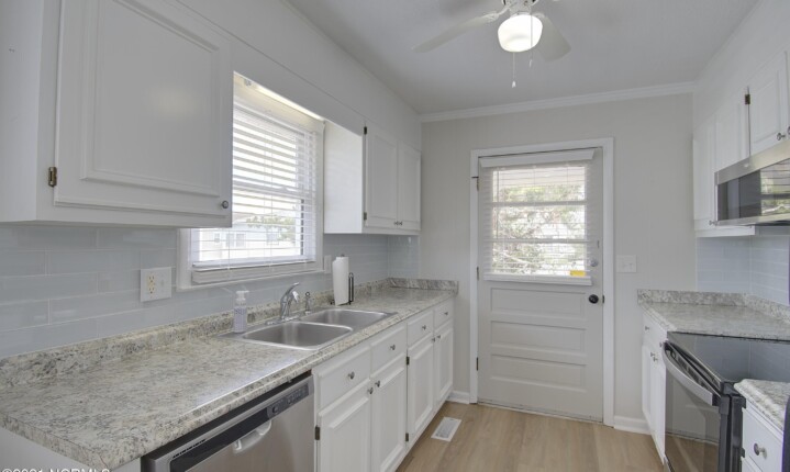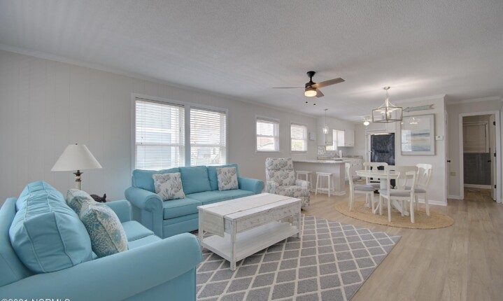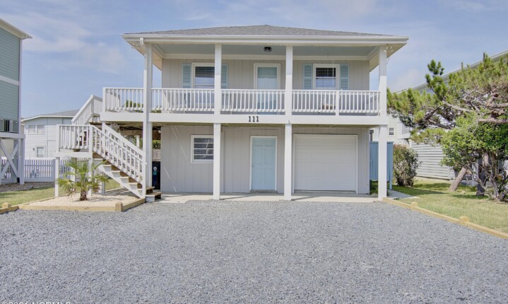 Did some one say they wanted a beach cottage on Holden Beach? This is it! Newly updated with a new roof, LVP flooring, painting, window blinds, light fixtures, appliances upstairs, some ship lap walls, and other odds and ends! With furnishings conveying and remodeled bahts, you will surely love the cottage decor, and the easy access to the ocean right off the front porch and only steps down Conch Street. The downstairs is self sufficient, should the owner choose to have a full time neighbor! The garage serves to house the HVAC and still has ample room for a golf cart or other small vehicle! Located in the area of Holden Beach with higher elevations, so living on ground level is acceptable if grandfathered.